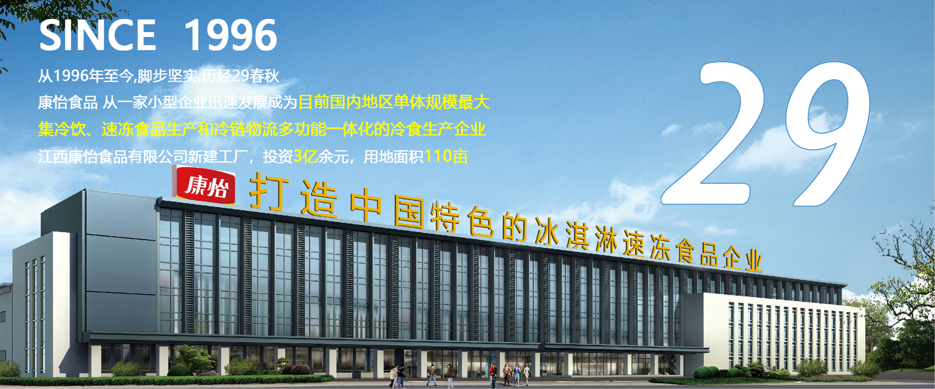江西康怡食品有限公司始于1996年,由浙江客商投資興建,專業(yè)生產冰淇淋、雪糕、冰棒的冷凍食品生產企業(yè)。企業(yè)先后通過ISO9001、HACCP、ISO22000等多種質量體系認證,是國家質量技術監(jiān)督局批準的《市場準入證》并榮獲《中國馳名商標》《江西省著名商標》、《江西名牌產品》《江西暢銷產品》、《國家高新技術企業(yè)》、《全國食品安全百佳先進單位》、《消費者最受歡迎的產品》、《誠信企業(yè)》等多項榮譽稱號。公司運行多年來,經(jīng)營業(yè)績、經(jīng)濟與社會效益高速增長。2019年6月,在市委、市政府的支持下,康怡公司新建集冷食生產和冷鏈物流于一體的大型現(xiàn)代化基地,公司座落在樟樹市藥都科技產業(yè)園,地理位置優(yōu)越、交通便利,總投資3億,占地面積110畝,建筑面積7.8萬平方米;綠化率21%;容積率1.16;建筑密度54%。投產后日總產能450噸,其中,冰淇淋350噸、速凍食品100噸。年總產能5萬噸,其中冰淇淋3.5萬噸、速凍食品1.5萬噸;年產值6個億,年納稅5000多萬元。預留二期,未來可突破年總